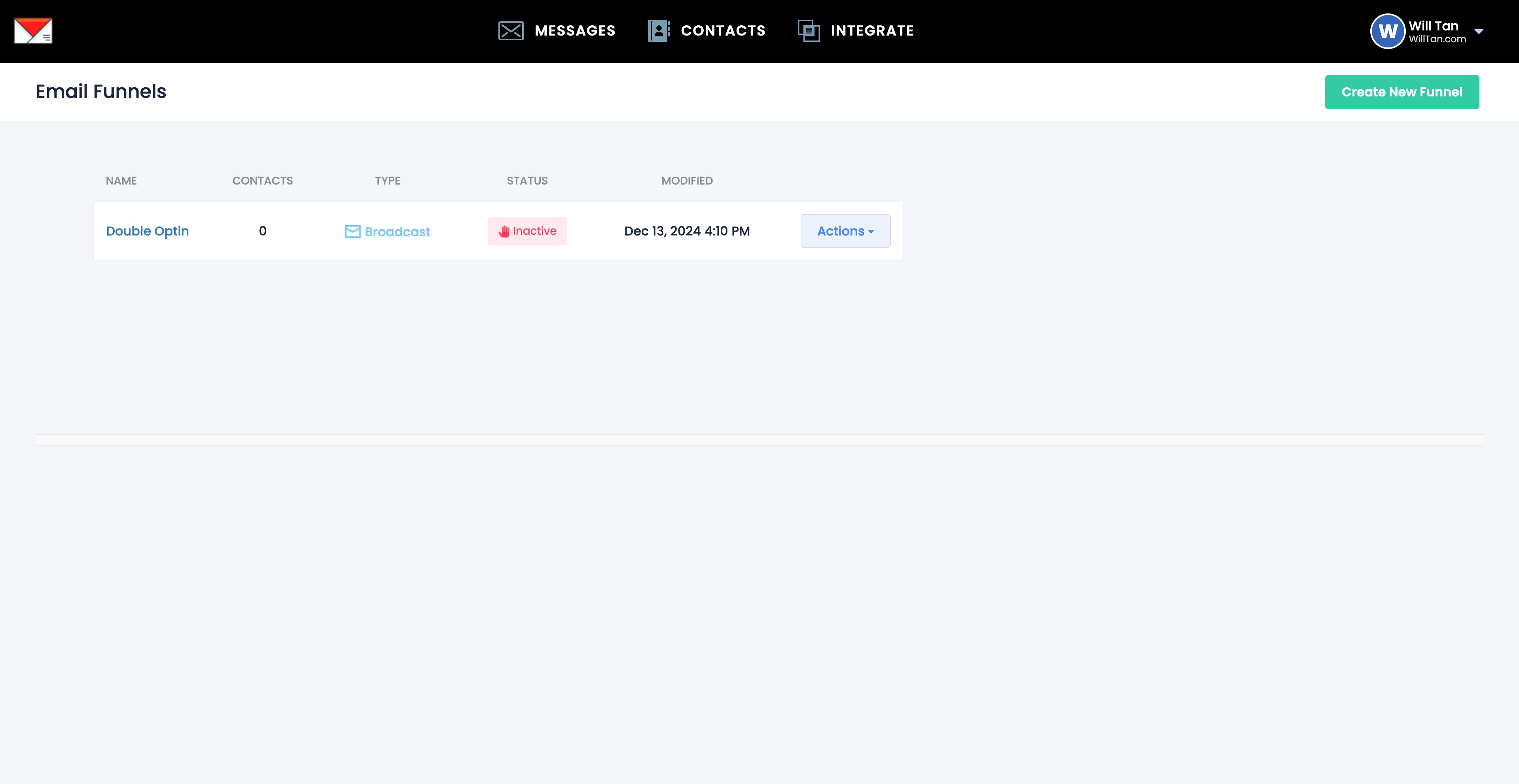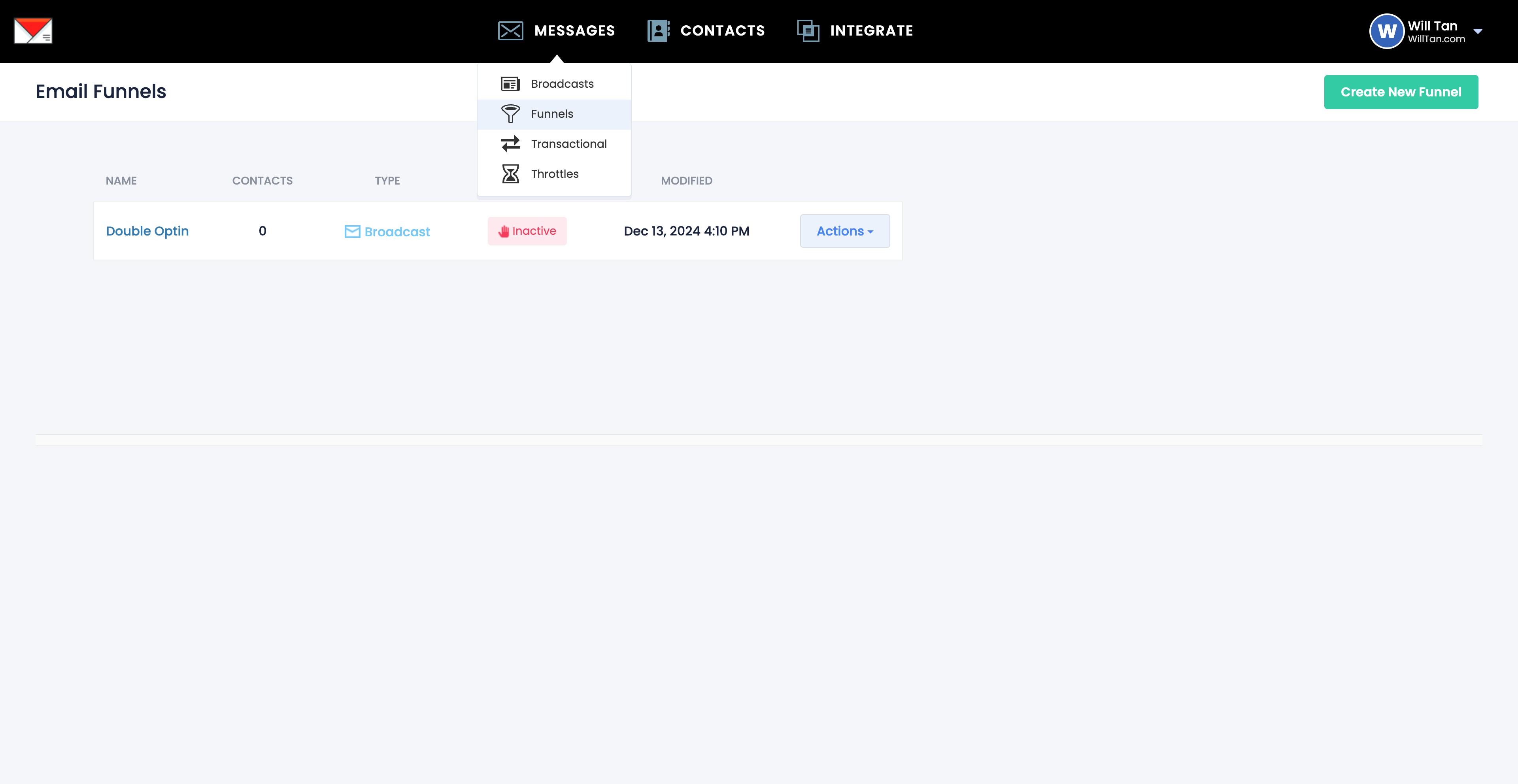 Navigate to https://app.willsend.email/funnels